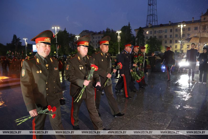 В Минске по традиции в 4.00 к обелиску на площади Победы цветы и венки возложили государственный секретарь Совета безопасности Республики Беларусь генерал-лейтенант Александр Вольфович, председатель Госпогранкомитета генерал-лейтенант Анатолий Лаппо и руководство пограничного ведомства, курсанты Института пограничной службы, офицеры частей Минского гарнизона, ветераны-пограничники. На Вахту Памяти у Вечного огня заступили солдаты роты почетного караула.