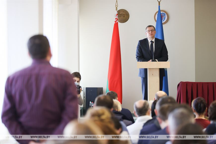 Тема встречи - итоги VI Всебелорусского народного собрания. Генеральный прокурор сообщил трудовому коллективу об основных направлениях социально-экономического и общественно-политического развития страны, выработанных во время этого знакового для страны мероприятия.