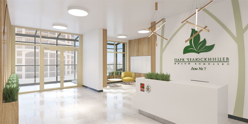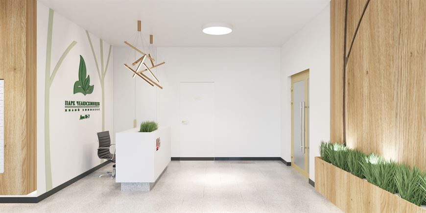 Просторные и светлые лобби расположены на вторых этажах домов. Они оформлены в эко-стиле, подчеркивая особое месторасположение комплекса. По хорошей традиции застройщика лобби больше напоминает ресепшн дорогой гостиницы – здесь много света благодаря панорамному остеклению, есть стойка для консьержа, уютная зона встречи гостей и ожидания курьера, а также санитарная комната.