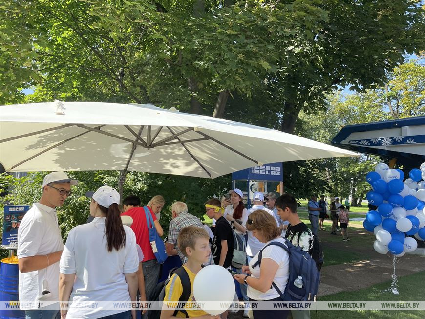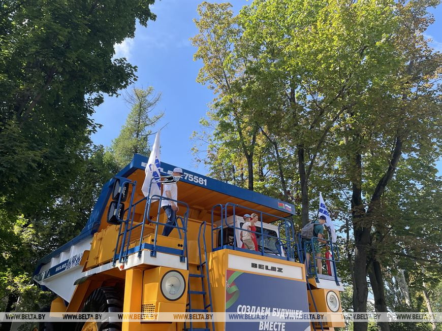 Еще одна праздничная площадка развернулась на ВДНХ у павильона Республики Беларусь. Здесь москвичи и гости российской столицы могли подняться на палубу карьерного самосвала БЕЛАЗ-7558, сделать оригинальные снимки в фотозоне "Качели", приобрести сувениры с фирменной символикой и с помощью "Почты БЕЛАЗа" отправить памятную открытку с изображением самосвала в любую точку мира. А посредством виртуальных технологий желающие получили возможность прокатиться на самом большом в мире карьерном самосвале БЕЛАЗ-75710 грузоподъемностью 450 т, а также посетить БЕЛАЗ в Жодино и своими глазами увидеть сборку легендарных гигантов.-0-