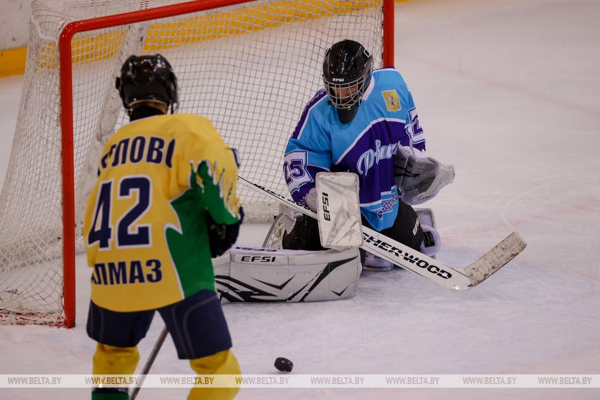 На прошлой неделе соревнования в старшей группе дивизиона Б выиграл "Альянс" (Лельчицкий район), вторыми были хоккеисты "Алмаза" (Дятловский район), третье место заняли "Кадинские львы" (Могилевский район).