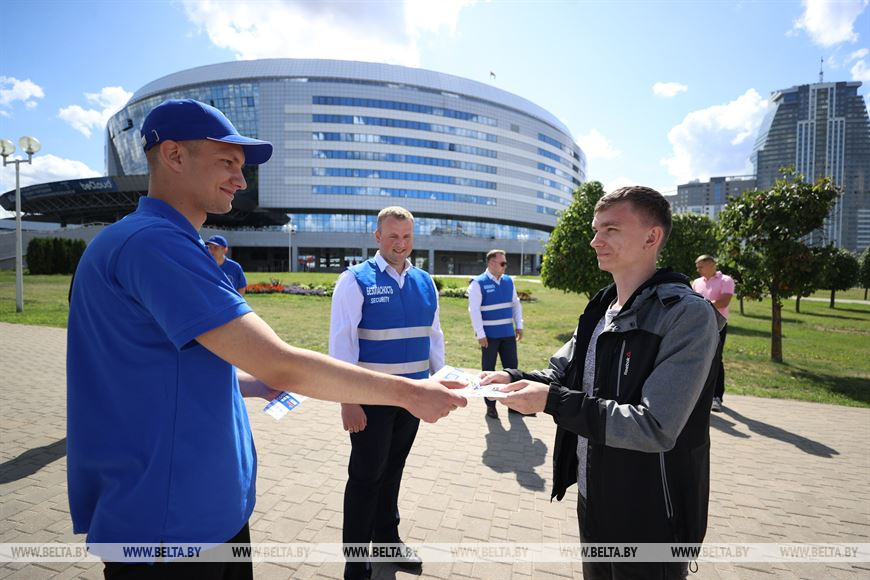 У спортивных арен, где пройдут состязания, заработают ведомственные интерактивные площадки, на которых у болельщиков появится возможность пообщаться с милиционерами, курсантами и лицеистами, осмотреть выставки техники и вооружения. А еще любители спорта смогут понаблюдать за работой конного патруля, увидеть сотрудников на сигвеях и электротранспорте, полакомиться ароматной кашей из полевой кухни и познакомиться с талисманом акции - Степанычем.