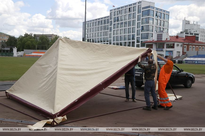 На стадион в Могилеве доставили необходимое оборудование, ведется установка специальных палаток. "Наша задача - провести соревнования на высоком организационном уровне не только для спортсменов, а также для гостей, туристов и жителей города, - сказал Дмитрий Латенков. - Для удобства могилевчан и гостей города неподалеку от стадиона во время II Игран стран СНГ организуем специальную фан-зону, где можно будет смотреть трансляции, участвовать в спортивных интерактивах и активностях".
